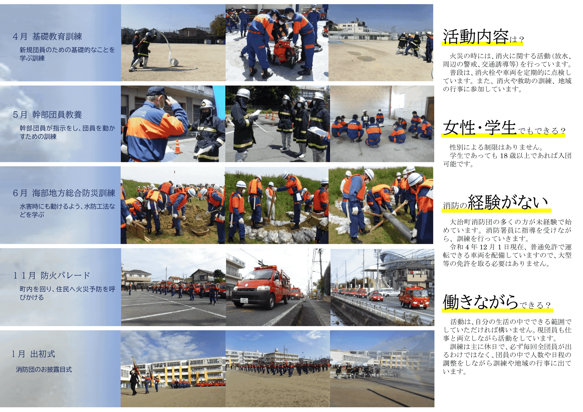 ※消防団の方々が団員を勧誘に各地区のご家庭を訪問することがあると思いますが、消防団の趣旨をご理解いただきますよう何卒よろしくお願いします。