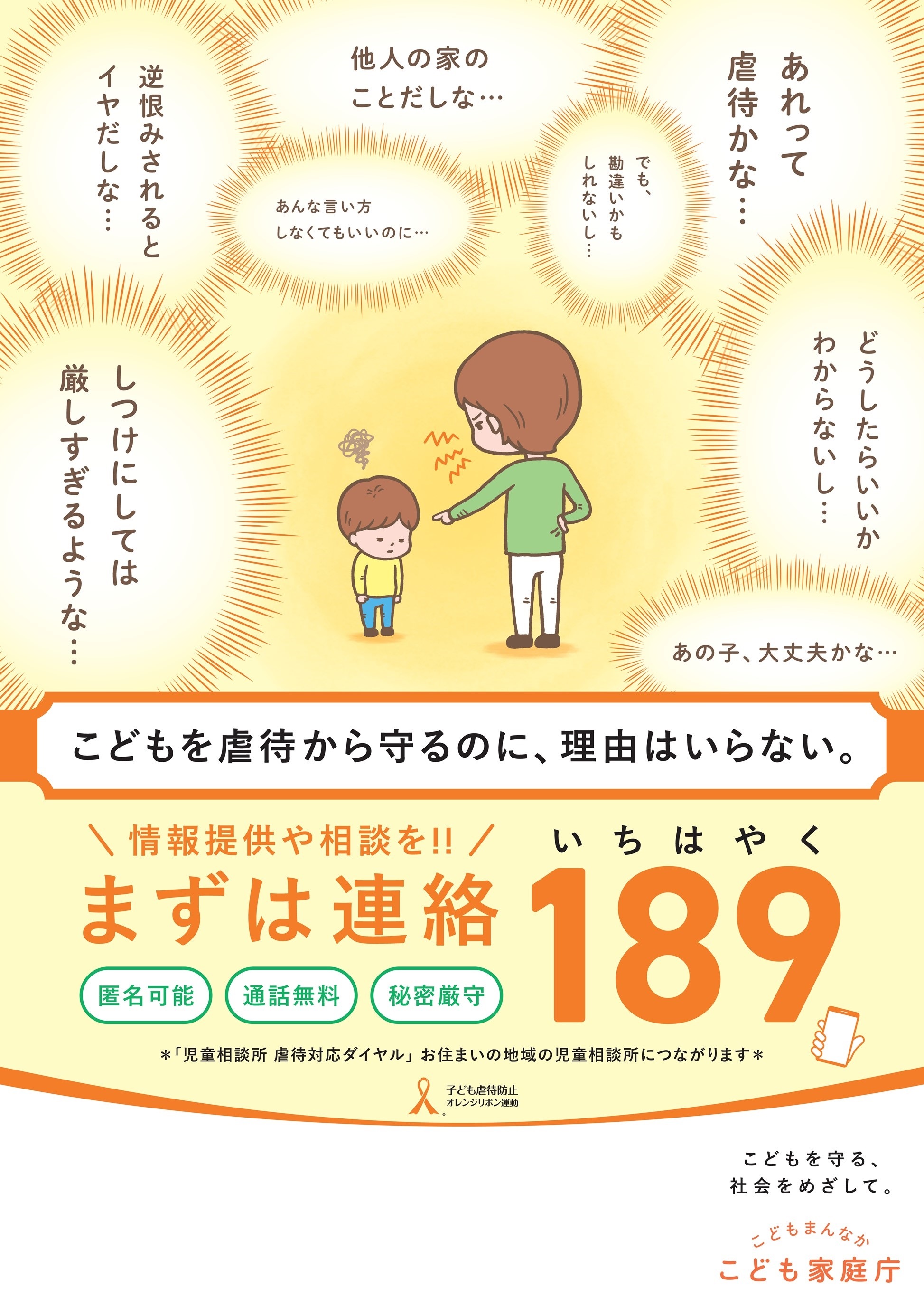 児童相談所虐待対応ダイヤル189(いちはやく)通話料無料