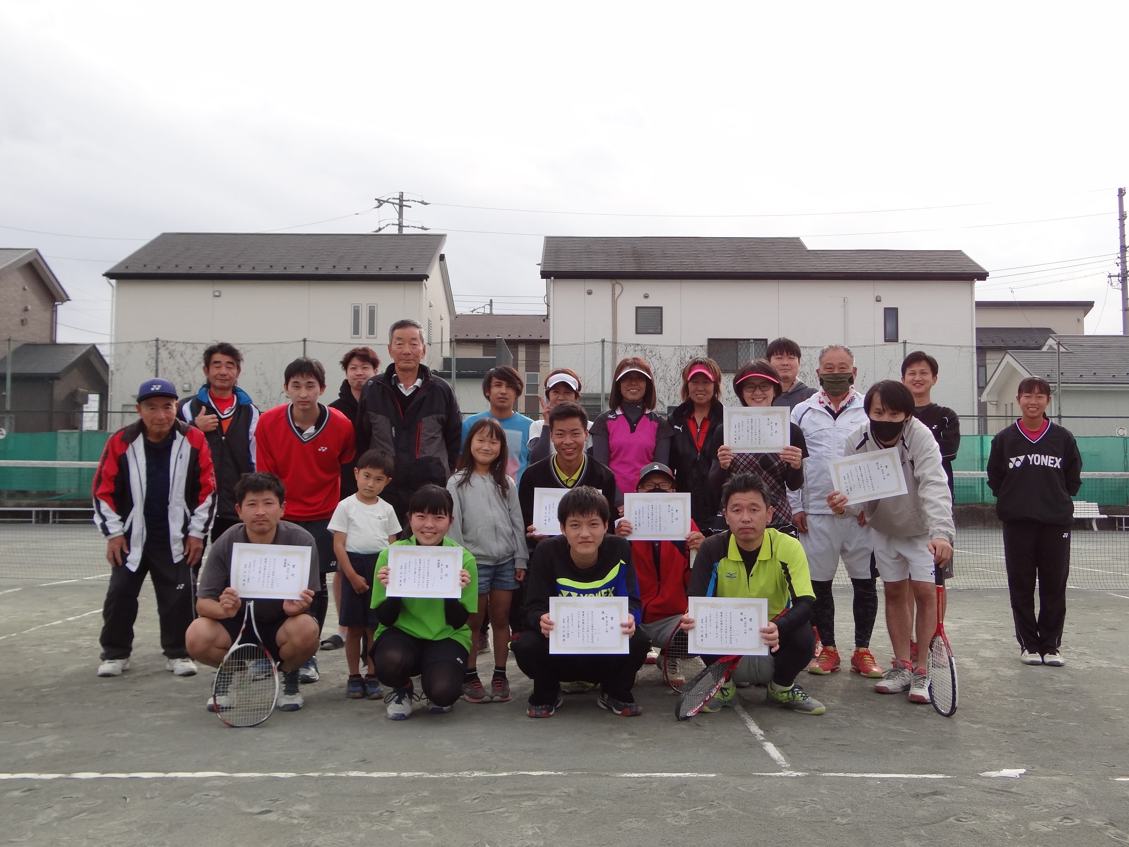 開催日 令和3年11月21日(日曜日) 場所 大治中学校テニスコート 部門 中学生男子の部 中学生女子の部 一般の部(混合) 優勝 濱口 湊・野口 慶篤ペア 尾畑 真愛・藤田 結菜ペア 吉田 椋哉・加納 正治ペア 準優勝 堀 耀介・中島 巧翔ペア 久保 ほのか・立木 美彩ペア 木下 千司・小森 彩花ペア 第三位 柴田 健太・青木 東明ペア 岡部 沙南・島 一華ペア 鎌田 賢志郎・近藤 吏朗ペア 第三位 吉田 遼汰・吉野 雅人ペア 伊藤 優奈・霜田 遥香ペア 小森 健司・近藤 明美ペア 一般の部 入賞者の皆さん